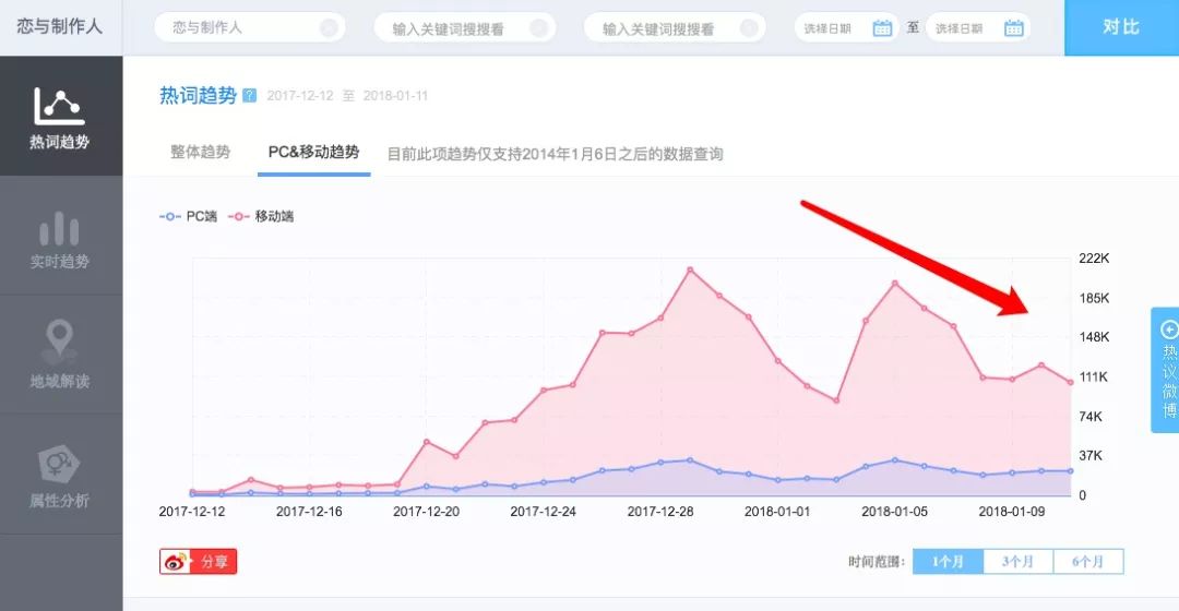 无论是微信指数还是微博指数,恋与的热度都在下降。微博指数显示,1月5日以后,恋与热度开始缓慢下降。
