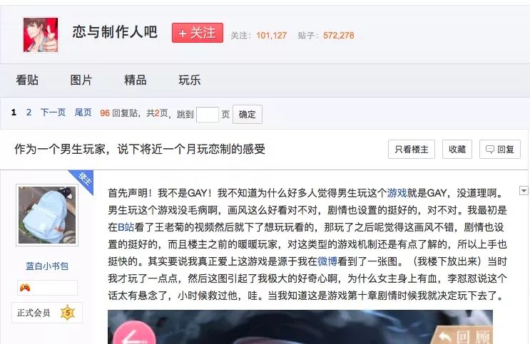 在恋与的贴吧中,女性玩家们以“某太太”身份自居,分享游戏的进度和甜蜜约会的细节。