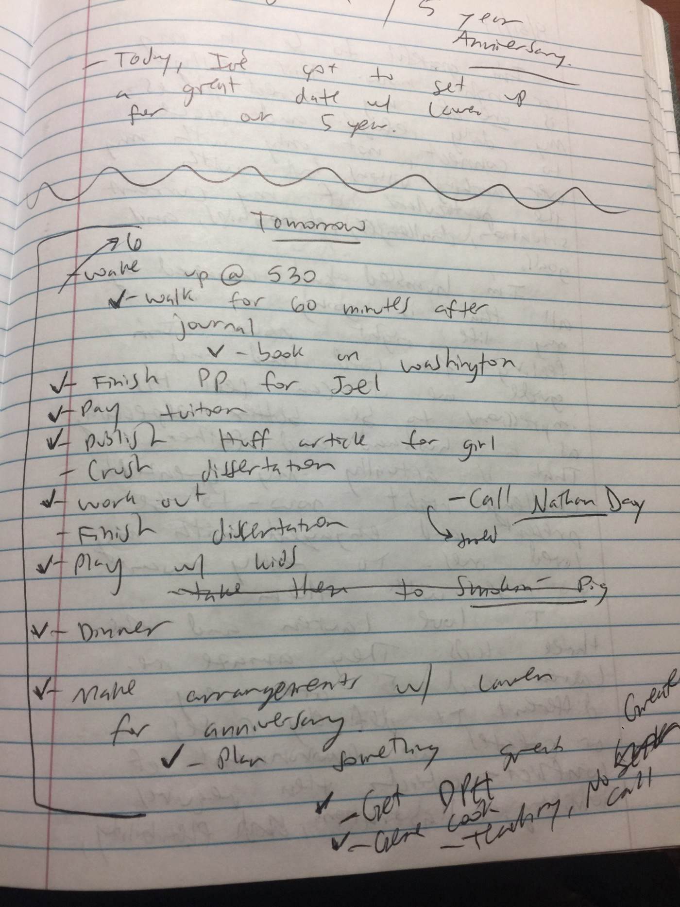 写下你下周要做的具体事情(包括晨间惯例、学习、人际关系、工作、健身等的计划)