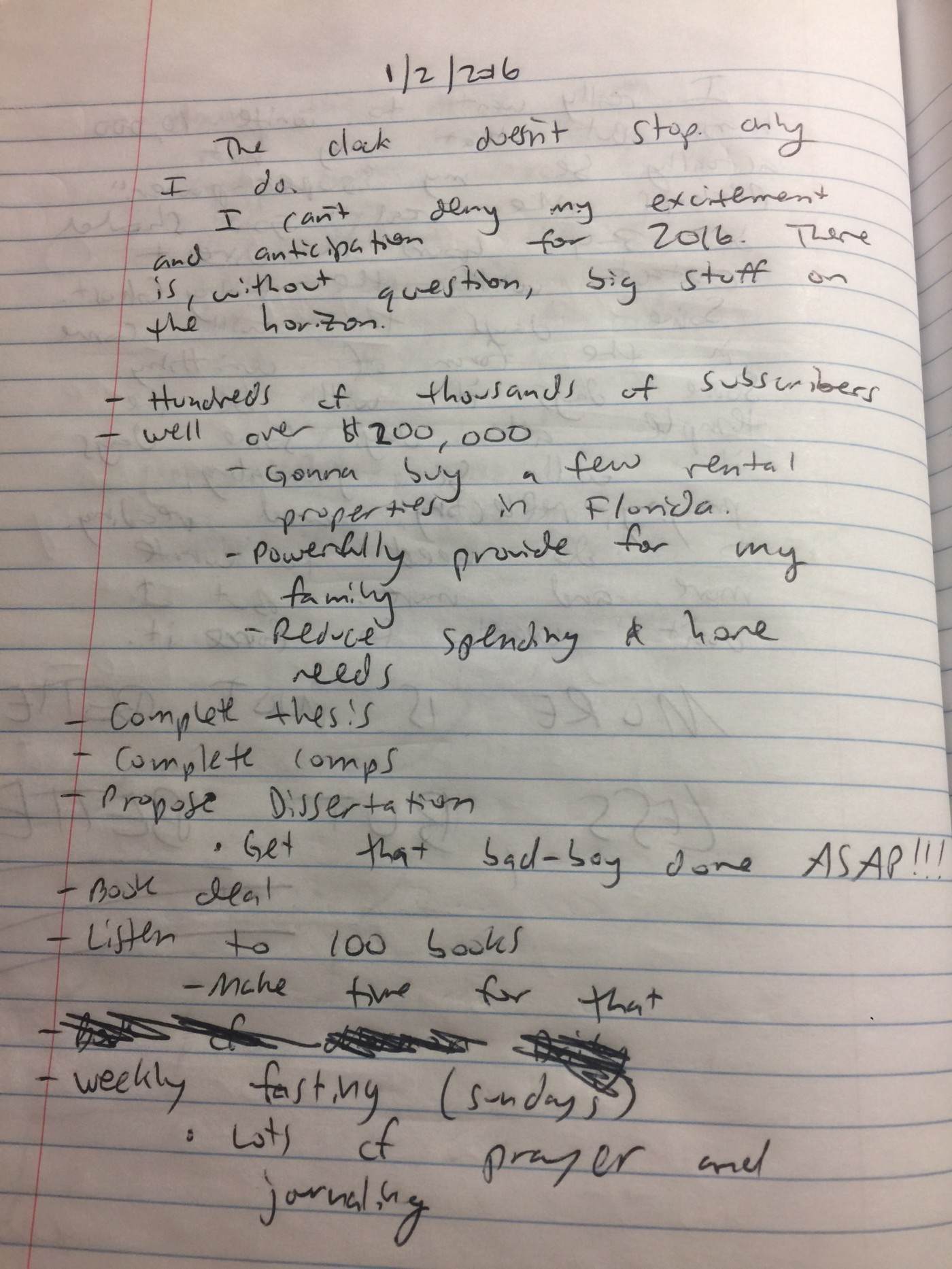 下面是我自己的日志中与目标相关的内容。有些是最近的,我还放了一些2016年初的旧内容。向大家展示这些图片的目的不是为了让你们关注我日记的内容或目标,而是为了展示用日记来框定和实现目标的持续过程。