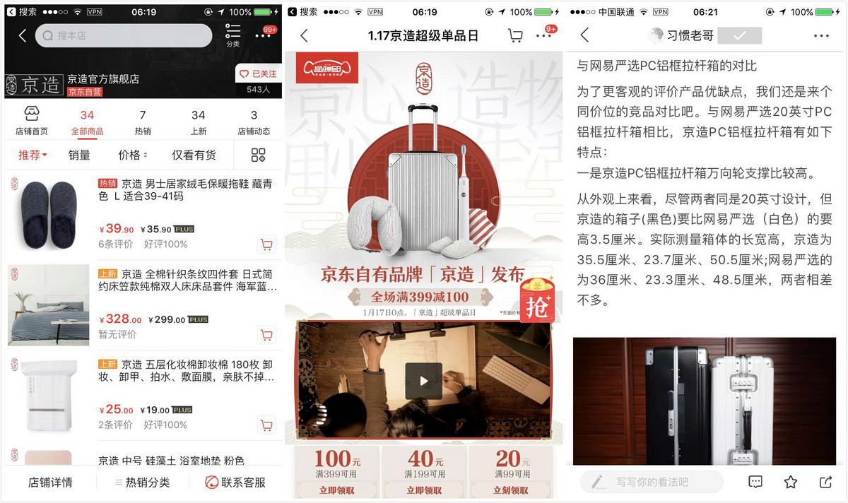 京东悄然上线了生活家居自有品牌“京造”。消息人士透露,此项目从去年9月启动,由上海一支 20-30 人团队负责。品牌对标网易严选、米家有品,采用 OEM/ODM 模式,提供精选、高性价比、有调性的产品。已上线 34 个 SPU 中,包含拉杆箱、化妆棉、电动牙刷,毛巾、床品、内衣袜子等。从官方旗舰店的大促页面来看,1月17日将是第一波正式宣传的日子。
