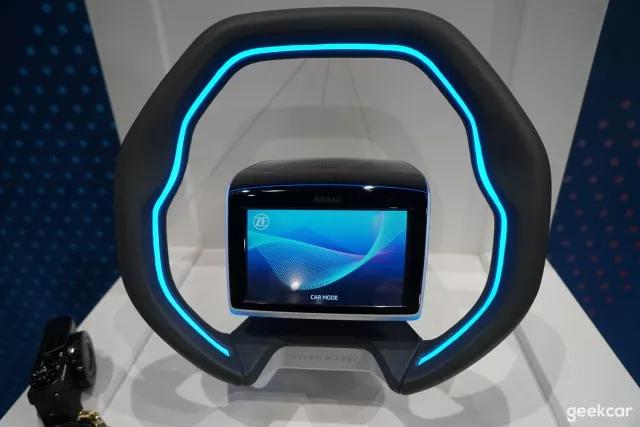 采埃孚:这个方向盘的屏幕周围没有实体按键,而且最重要的是,屏幕并不是触摸屏。那么问题来了,它怎么进行交互?答案是,通过拍打方向盘的不同位置来触发交互动作,官方新闻稿描述:「轻敲方向盘表面可以按响喇叭,双击或是单击加滑动方向盘轮缘便可以激活所动作的这部分方向盘轮缘相关联的指示功能,例如改变车内温度控制。」