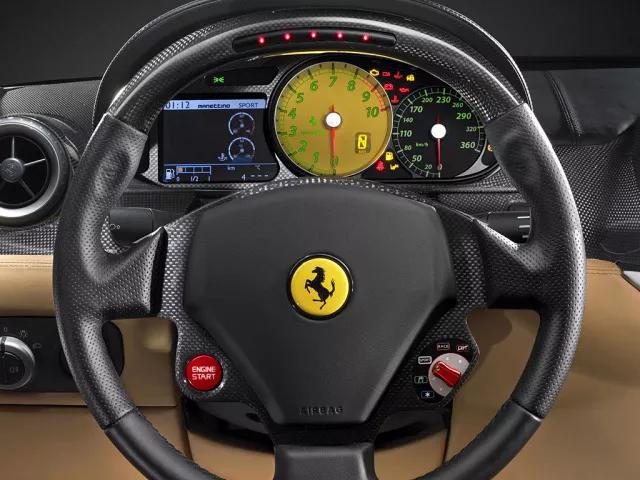 在民用车上,方向盘屏幕其实也有,不过尺寸小的感人,主要出现在性能车、跑车上,用来显示档位。比如法拉利的方向盘: