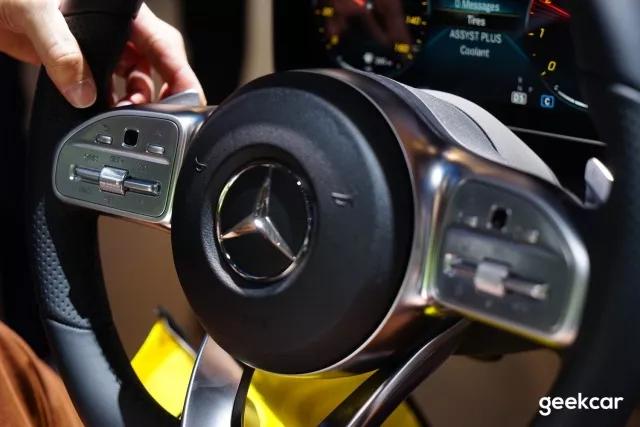 奔驰 E 级的方向盘,在实体按键之外,引入了「触控板」的概念,这次 CES 上奔驰发布的新一代交互系统沿袭了这种设计,方向盘左右两侧的小触控区分别用来控制左右两个大屏: