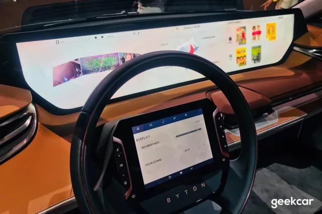 除了 49 寸大屏,这个自带屏幕的方向盘也成了 BYTON Concept 关注、讨论较多的部分。屏幕尺寸是 8 寸。