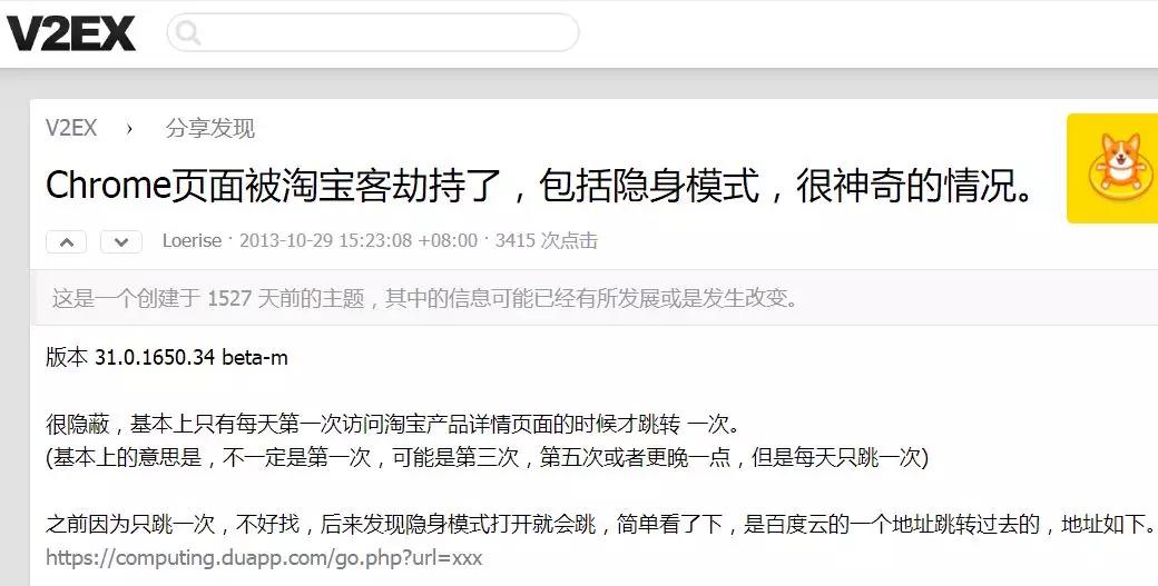 (著名技术交流网站V2EX网友反应页面被劫持的情况)