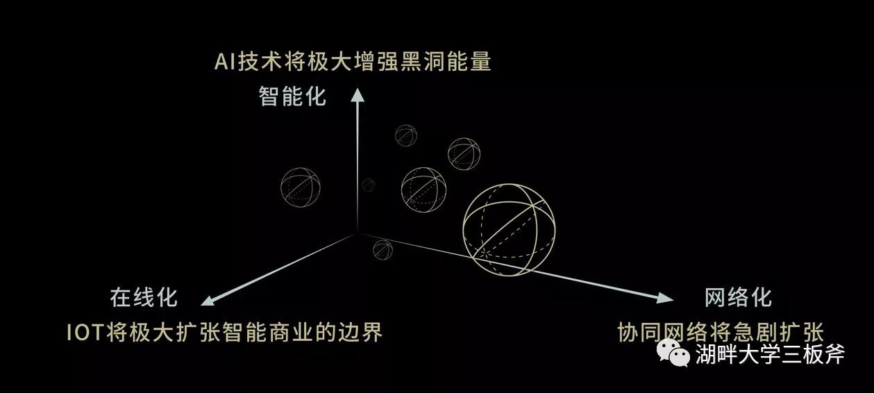 第二,颠覆式技术形成新的黑洞。如果两年前我讲区块链、讲比特币,可能大部分人都不知道我在说什么,但是今天已经不用过多解释。我们看到区块链,由于对生产关系的重构,正给整个社会带来一次大变革,已经是看得见的一个颠覆式的技术。