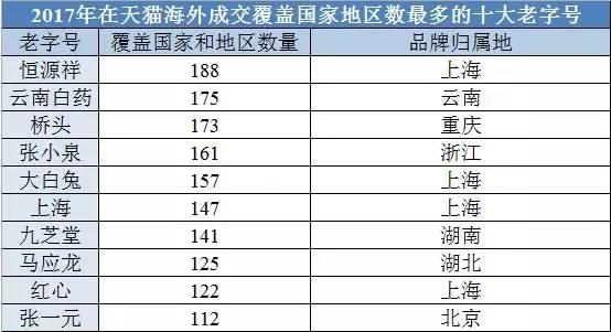(2017年在天猫海外成交覆盖国家地区数最多的十大老字号)