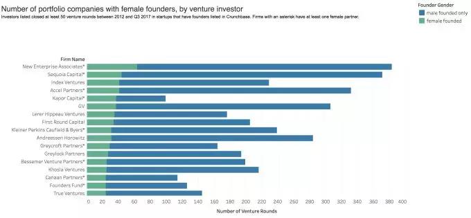 在梳理完女性创始人图谱的同时,Crunchbase还考察了美国风险投资机构中女性合伙人的分布。