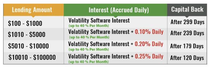 与各个互联网理财平台相似,投资者在 Bitconnect 把钱借给需要的公司,以获得回报。不同的是,必须使用加密货币投资,以及奇高的收益率。