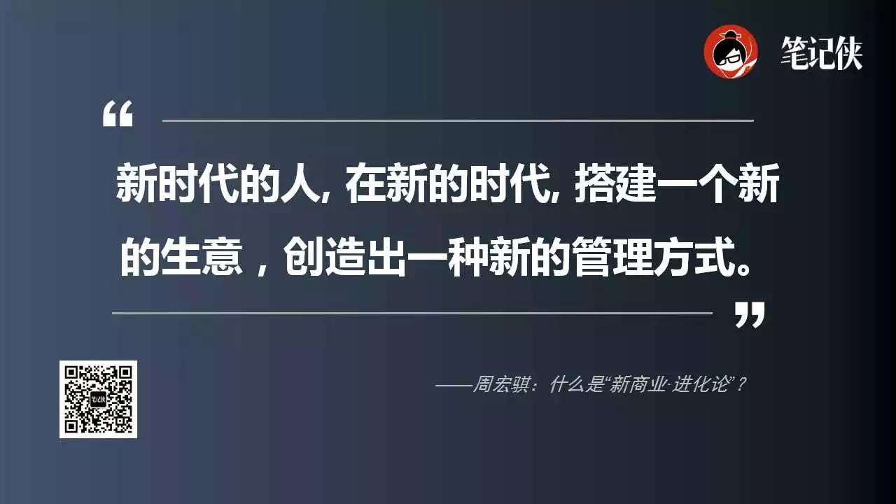 所以,所谓的“新商业·进化论”,我们认为是新时代的人,在新的时代,搭建一个新的生意,创造出一种新的管理方式。