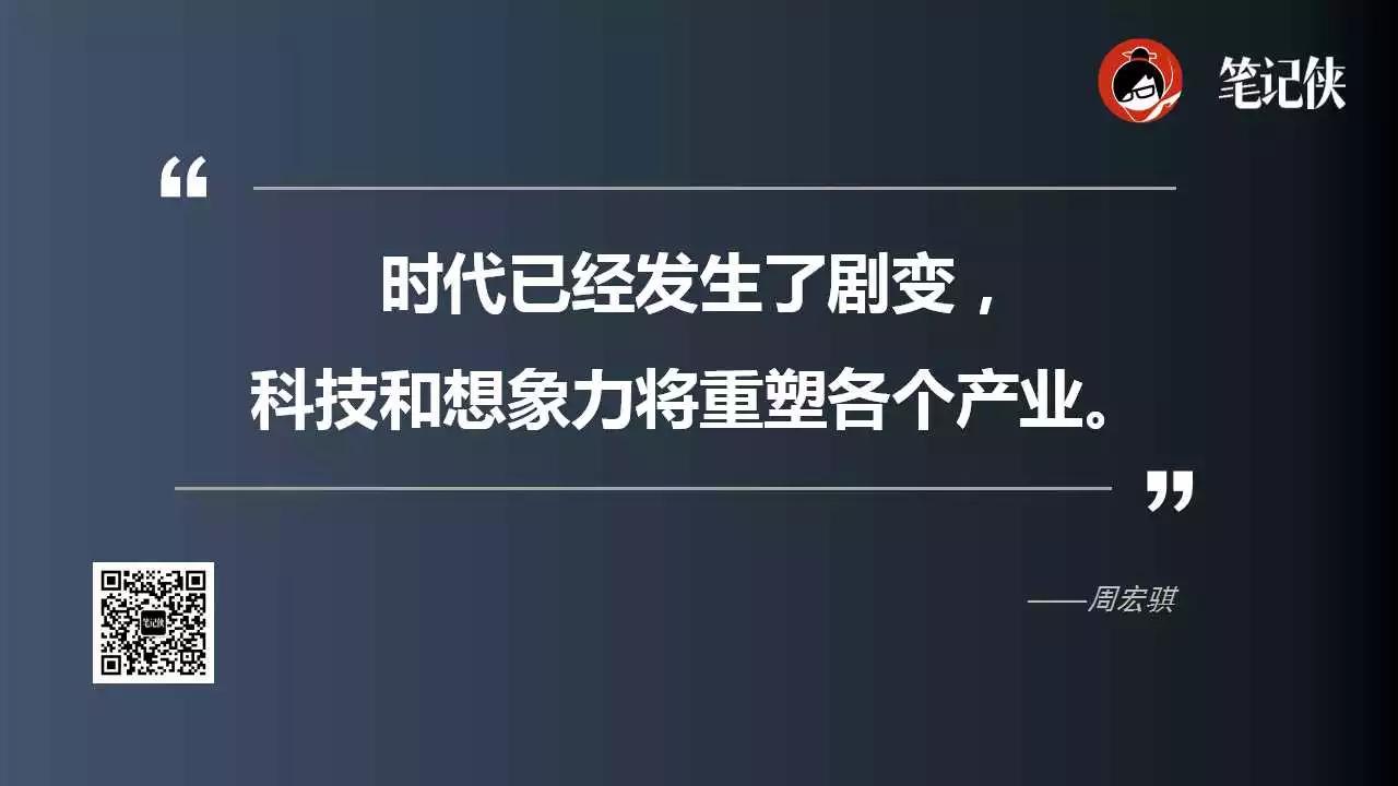 时代已经发生了剧变,科技和想象力将重塑各个产业。对于所有的从业者而言,这是个好机会,市场的边界正在被打破,更多的竞争进入的同时,市场也在变大。