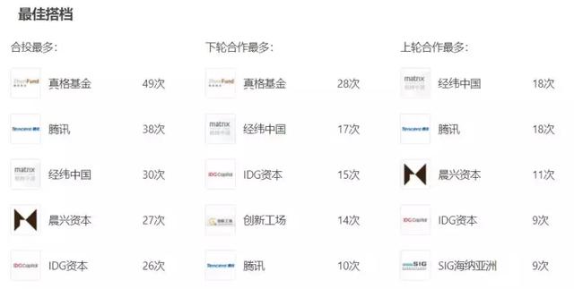 投资搭档解读:与真格基金关系最亲密,与经纬中国上轮合作最多