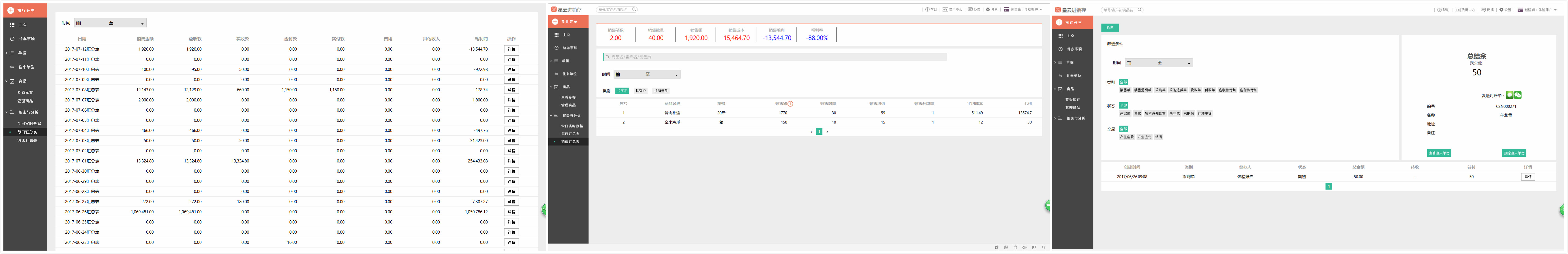 据神記进销存 COO 郑津东介绍,传统的进销存 ERP 用户体验并不是太好(如上图所示数据都按 Excel 形式按行记录,可视化程度很糟糕),使用流程复杂且学习成本高。一般学习时间都在一周以上。且传统 ERP 并不会根据特定行业来开发相应功能,基本是“大锅饭”,所有行业通用。