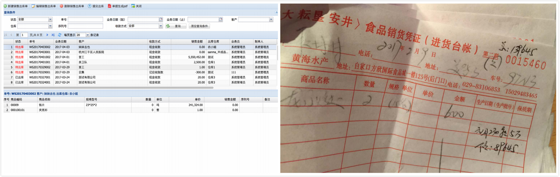 而且渠道混乱,线上的单据进入线上的进销存,线下柜台、电话的单据进入线下的进销存系统,老板统一汇总后再去一一通知库管、销售和客户。