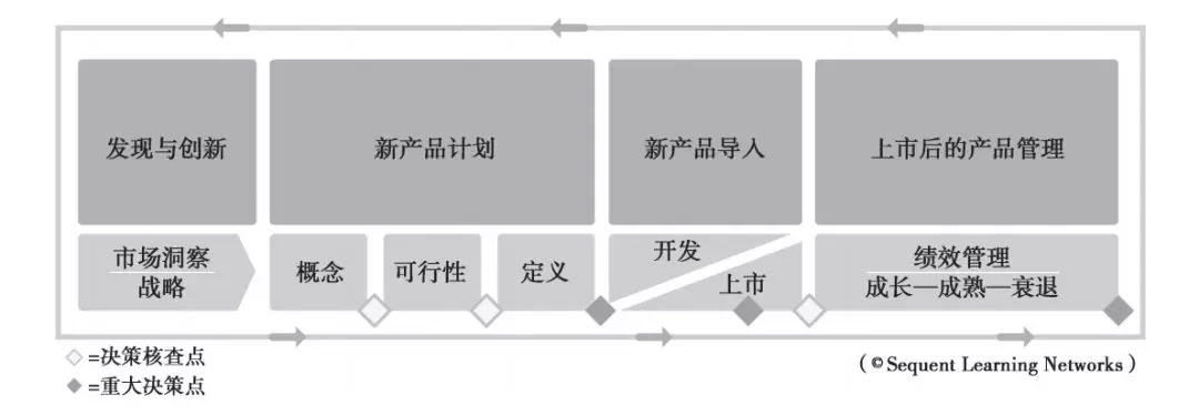 四个工作模块分别是:发现与创新、新产品计划、新产品导入和上市后的产品管理。