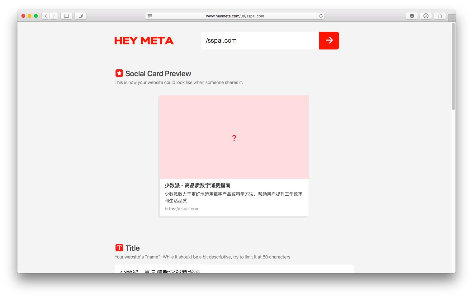 如果你有一个自己搭建博客或者小型网站,应该会对 Hey Meta 产生兴趣。 meta 标签虽然不是必须的,但如果你能更好地使用它,就能更进一步改善网站的体验。