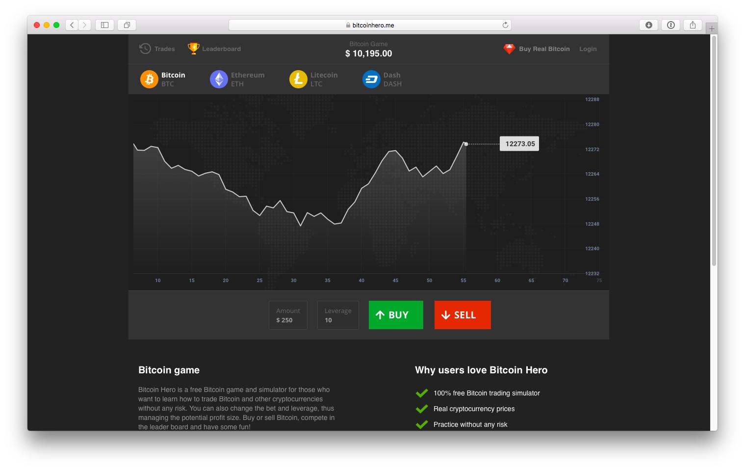 Bitcoin Hero 目前支持比特币,以太坊等 4 种主流数字货币的模拟交易,交易价格和某主流数字货币交易平台完全同步。我试了一下,成功地打消了持有数字货币的念头。