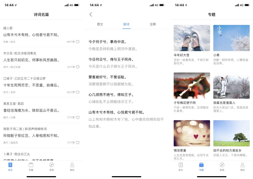 去年初《中国诗词大会》播出时,曾掀起了一阵「诗词热」。现在热度虽逐渐消退,但每日品读一首诗歌,也不失为一个好习惯。如果你对于诗词仍有执着,这款「诗词名篇」会是一个不错的选择。应用收录了千百首上至先秦时期,下至现当代的诗词歌赋。每首诗词都提供了翻译和注释,无论阅读还是学习,都会更为便捷。