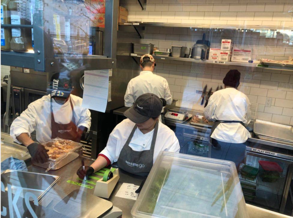 最后,Amazon Go并不是真正的无人商店,因为它还是需要工作人员准备食物、补充商品,Amazon Go里还有一个厨房,会准备三明治、沙拉和一些外卖午餐等即食类商品。