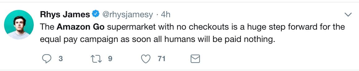 更多的消费者表达了自己的忧虑,一旦Amazon Go零售店的模式在全美推广,越来越多的收银员将失业,用科技取代劳动力对社会究竟是好是坏?