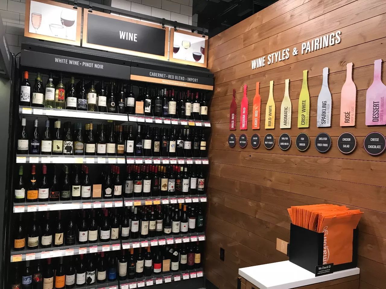 开在西雅图市中心的Amazon Go周边都是办公楼,附近连个停车的地方也都被早早占领。店里没有什么新鲜的肉类或者蔬菜可以卖,主要的食物都是像国内全家或者罗森那样的三明治、小食和饮料。不过,Amazon Go有个还不错的酒柜。