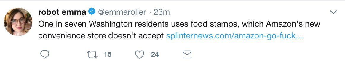 但Amazon Go不接受Food Stamps(美国政府发放给低收入家庭的食品补助劵)的做法令消费者担忧,七分之一的西雅图市民将被拒之门外,这是否是一种阶级歧视?