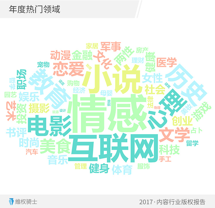 情感领域常年领跑有多重原因,但蜂拥至这些热门领域不一定是最适合的。一方面,门槛低意味从业人员多,竞争剧烈,先来着很难通过长期积累建立竞争壁垒,另一方面,成本低导致被侵害的风险提高,而作品的独创性不高,能得到的保护也有限。