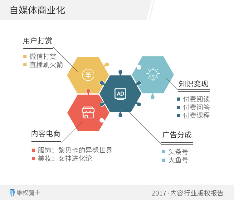 多数消费者养成内容付费习惯,现在是各类自媒体探索商业模式的最好时代。从互联网以广告位基础的商业模式延伸开去,自媒体人还找到了诸如打赏、内容电商、知识付费等商业模式。