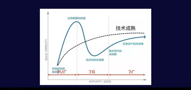如果你去追踪它们过去十年发布的图表,可以看到,一个技术诞生之后,会经历一个如抛物线,甚至是过山车一般的路径。