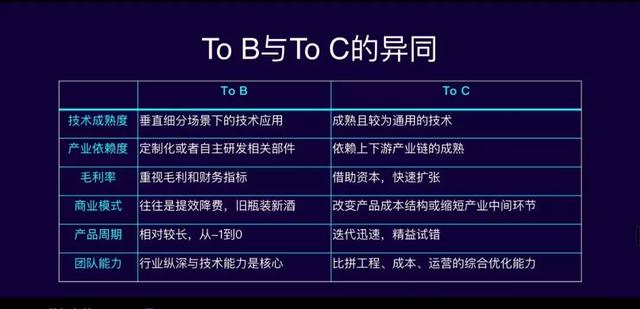 比如今天的人工智能行业还处在早期的成长阶段,所以to B的公司相对较多,而to C的公司较为艰难。