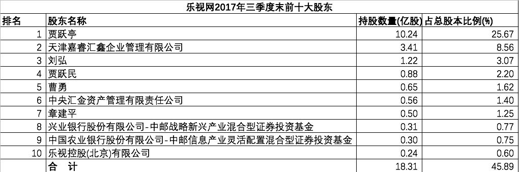 根据乐视网此前公告,乐视网共有16.48亿股处于质押状态,占公司总股本的41.32%,其中贾跃亭质押的乐视网股份为10.2亿股,占贾跃亭所持股份的99.54%,占乐视网总质押股份的61.89%。