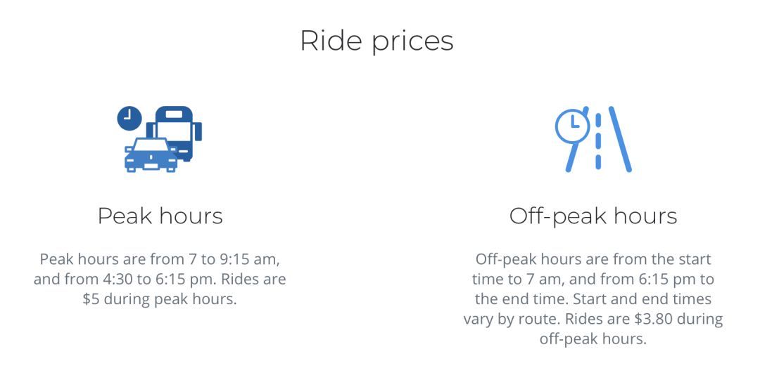 以旧金山为例,乘坐公共交通的平均花费是2.75美元,而乘坐Chariot小型巴士,享受Uber/Lyft乘车体验的,也不过花费3.8至5美元。以略高于公共交通、远低于Uber/Lyft的价格享受不错的乘车体验,是不是赚到了?