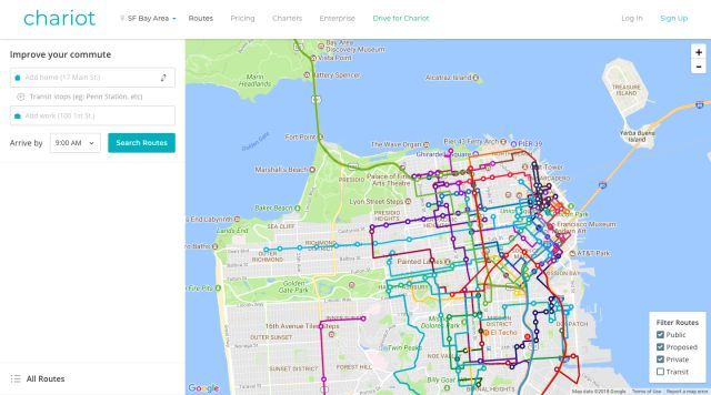 Chariot在旧金山的几条主要线路,基本上涵盖了所有主要工作点。