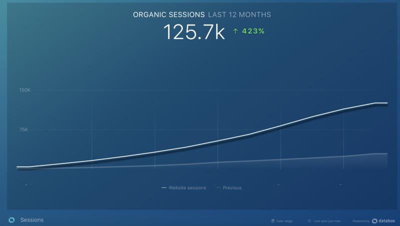 (Databo的数据表盘显示,自2017年初以来,Databox的自然流量增长了423%)
