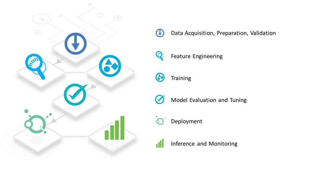 成功建立和部署机器学习和人工智能需要一个复杂且精心调控的工作流程,这其中涉及多个离散系统。首先,需要收集数据,清洗数据并且做好跟踪标签。 然后,必须确定预测所依据的适当属性(称为特征)。最后,开发人员必须对模型进行训练并进行验证,执行并不断优化。从开始到结束,这个过程可能需要几个月的时间,即使是最技术精通的组织。