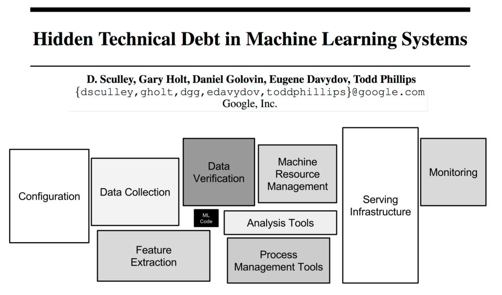 但迄今为止,机器学习和人工智能的研究和创新的优势一直致力于新算法,模型训练技术和优化。具有讽刺意味的是,机器学习和人工智能系统中只有一小部分代码用于学习或预测。相反,大部分复杂的任务是数据准备,特征设计以及大规模执行这些任务所需的分布式系统基础架构的操作上。