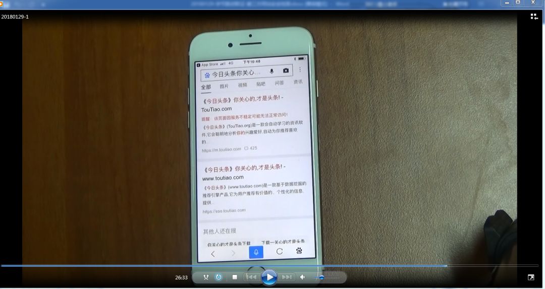 证据一:在安卓/苹果手机,使用“百度”app和手机自带浏览器进入百度搜索(baidu.com),各自搜索“今日头条”相关内容,搜索结果显示,今日头条官网被百度使用红色字体提示称,该页面因服务不稳定可能无法正常访问。实际点击打开,网站可以正常访问。
