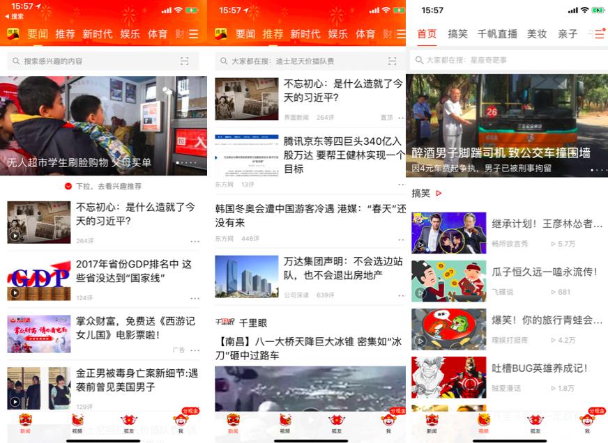 目前各个新闻客户端都在做各种内容形式的探索,问答是标配,2017年悟空问答、企鹅问答都在加大力度推广。短内容也开始流行,除了今日头条微头条外,百度、网易、知乎都加入了对应功能。搜狐目前的内容形态相对单一,因此2018年的当务之急是引入问答、短内容等内容形式,满足用户不同场景下的创作和消费需求,做到人有我有。