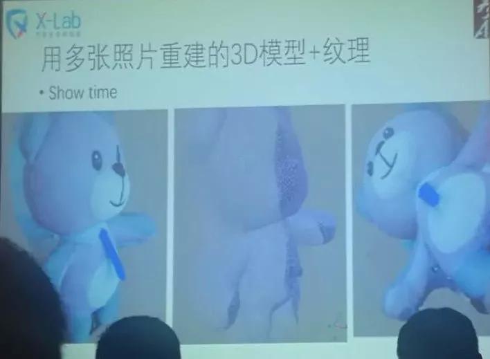另外,一段视频,譬如你一个回眸的动作,也可以被拿来建立 3D 模型。你看,这个小熊我拍了十几张照片,就完成了它的 3D 图像重建。」