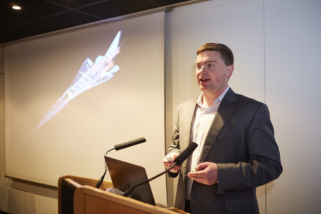 在六月的巴黎航展上,BOOM超音速CEO——Blake Scholl在新闻发布会上发言。