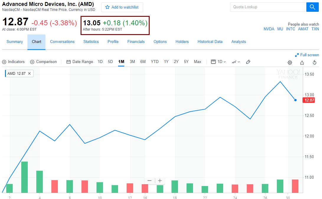 截至本周一,本月AMD股价累涨近30%,即使本周二收跌逾3%,本月也有20%以上涨幅。