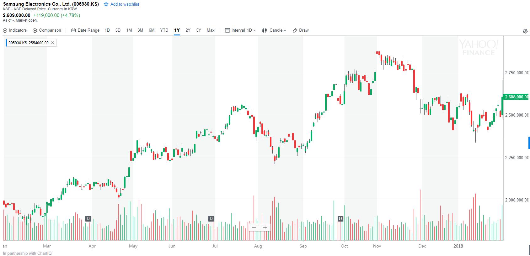作为亚洲地区科技股龙头,2017年全年,三星电子涨幅超40%。