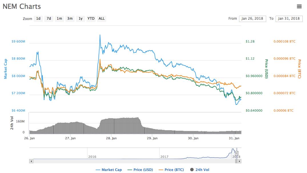 1月26日至1月31日新经币价格走势(来源:CoinMarketCap)