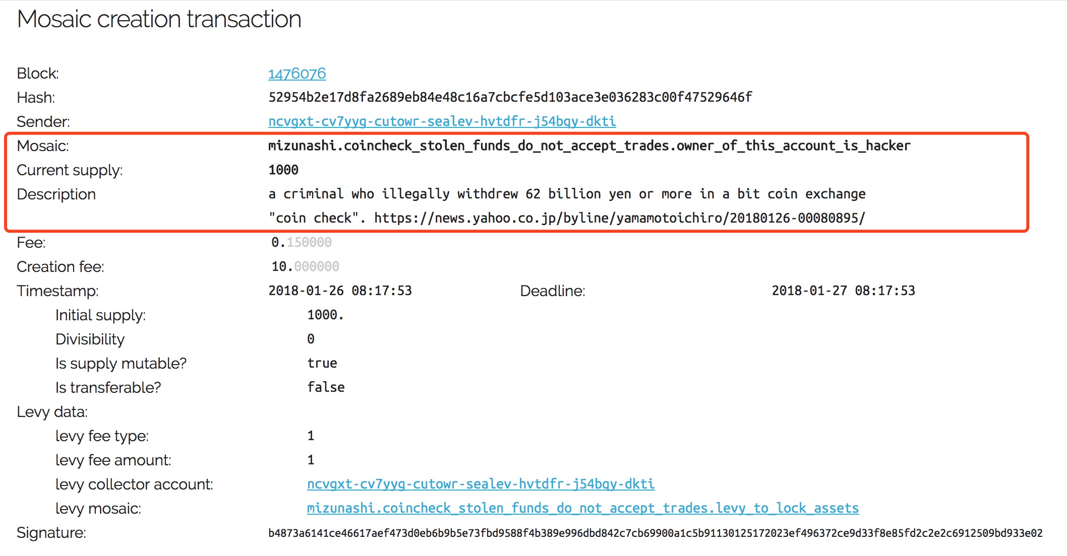 1月26日晚间,日本最大的加密货币交易所之一Coincheck召开新闻发布会称,由于遭遇黑客攻击,平台全部(5.26亿)新经币(XEM)被非法转移,丢失的新经币价值约5.23亿美金。这是历史上最大规模的数字货币盗窃案。1月26日,NEM.io基金会确认了这起盗窃事件发生时间是25日晚23点。