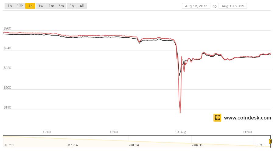 2011年6月19日,Mt.Gox平台上的比特币币值一夜之间跌落到只有1美分!