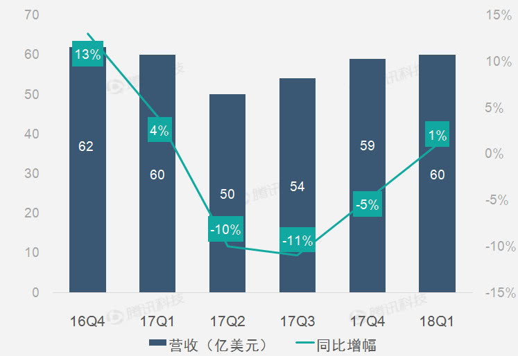 高通周三发布了该公司截至2017年12月24日的2018财年第一财季财报。财报显示,高通第一财季营收为60亿美元,比上年同期的60亿美元增长1%;净亏损为60亿美元,上年同期净利润为7亿美元。