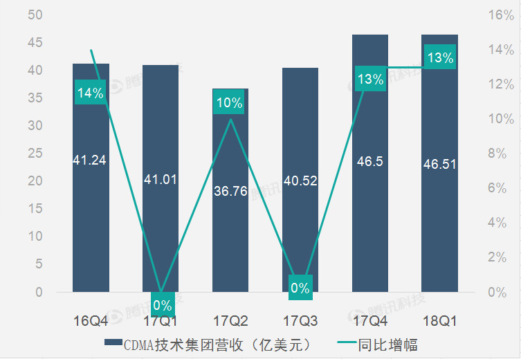 高通CDMA技术集团第一财季营收为46.51亿美元,与上年同期的41.01亿美元相比增长13%,与上一财季的46.50亿美元相比持平。该集团的税前利润(EBT)为9.55亿美元,与上年同期的7.24亿美元相比增长32%,与上一财季的9.73亿美元相比下滑2%;税前利润在营收中所占比例为21%,相比之下上年同期为18%,上一财季为21%。