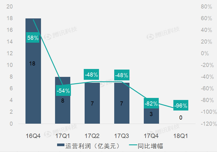 高通第一财季运营利润为0亿美元,比上年同期的8亿美元下降96%,比上一财季的3亿美元下滑91%;不按照美国通用会计准则计量的运营利润为16亿美元,比上年同期的21亿美元下滑21%,比上一财季的16亿美元增长4%。