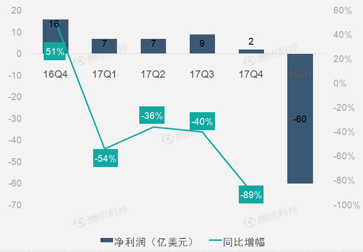 高通第一财季净亏损为60亿美元,上年同期的净利润为7亿美元,上一财季的净利润为2亿美元;不按照美国通用会计准则计量的净利润为15亿美元,比上年同期的18亿美元下降18%,比上一财季的14亿美元增长7%。高通第一财季业绩转亏,主要是财报中计入与美国《减税与就业法案》相关的60亿美元一次性支出,以及欧盟委员会对该公司处罚的12亿美元罚款。